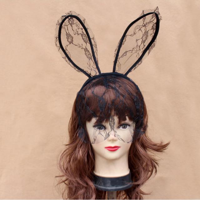 レースのベール付きうさ耳カチューシャ・コスプレグッズ・ハロウィン・バニーガール