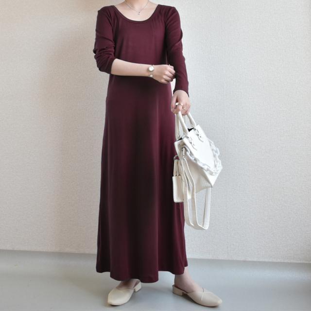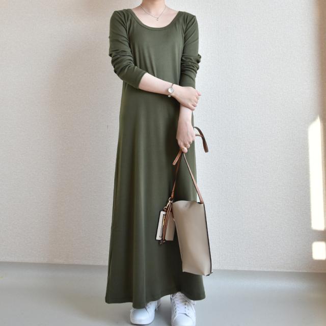 【シンプルだからこそ使い方いろいろ♪長袖ロングワンピース】
