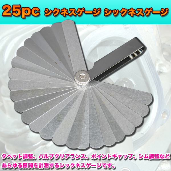 25pc シクネスゲージ シックネスゲージ 隙間 クリアランス 自動車 工具 計測 整備タペット バルブクリアランス ポイントギャップ シム