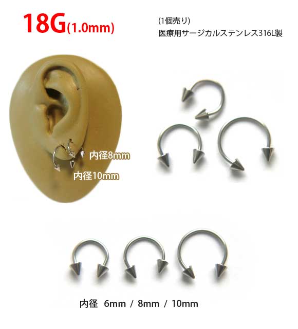 本日P2倍 ▲18G 軟骨 ピアス ボディピアス サーキュラーバーベル コーン メンズ 金属アレルギー対応 316L 高品質 ステンレス つけっぱなし 軟骨ピアス