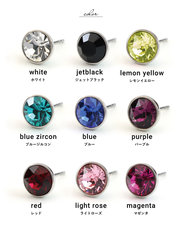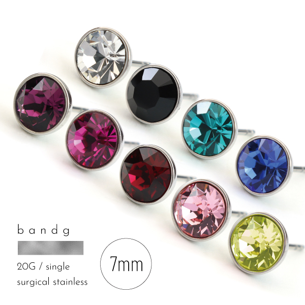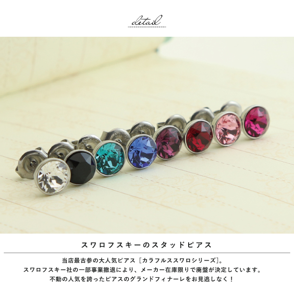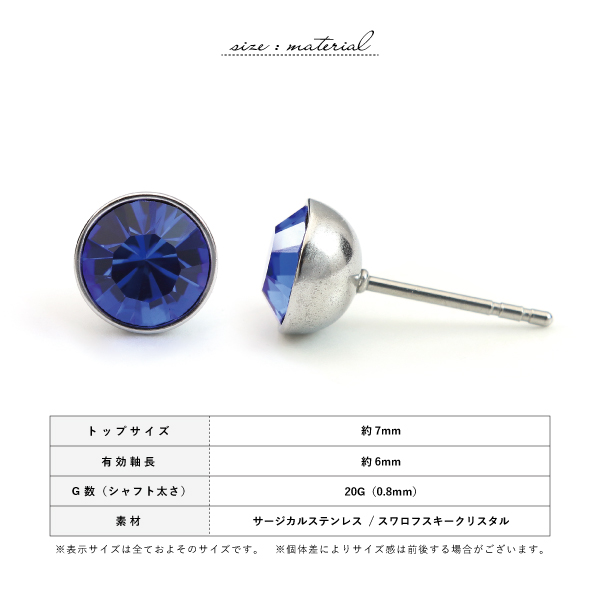 ピアス スタッド つけっぱなし ステンレス サージカルステンレス 医療用ステンレス 金属アレルギー アレルギーフリー 316L スワロフスキー 7mm シンプル 定番 ワンポイント 大きめ カラフルスワロ 片耳用 メンズ レディース