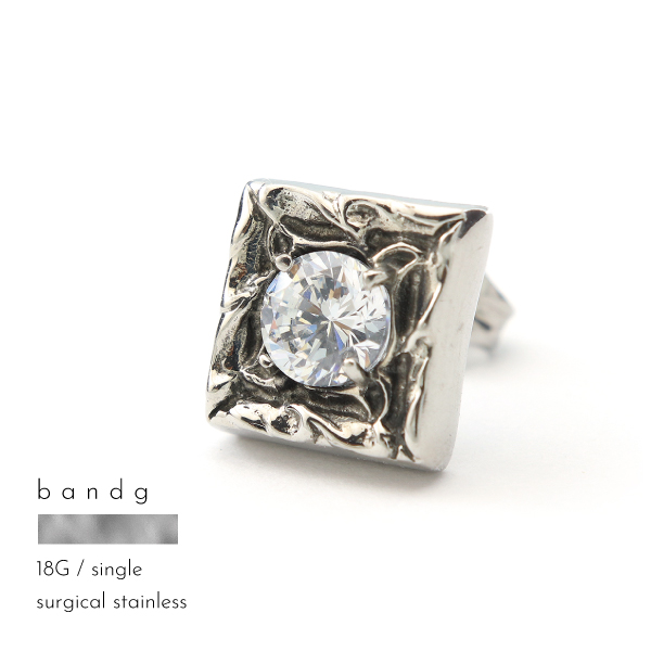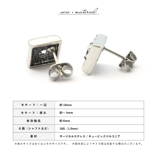ピアス スタッド スクエア レリーフ ステンレス サージカルステンレス 316L 医療用ステンレス 金属アレルギー アレルギーフリー 片耳用 キュービックジルコニア メンズ レディース アラベスク アンティーク ヴィジュアル
