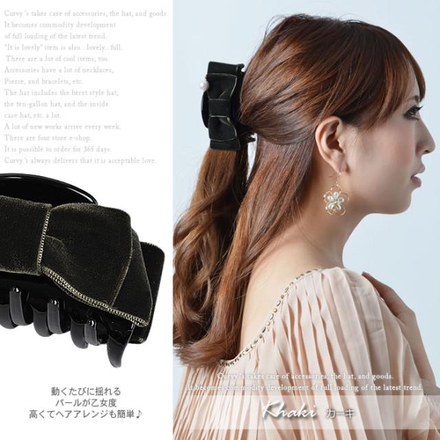 バンスクリップ 5営業日以内入荷宅配便配送バンスクリップ レディース ヘアクリップ ヘア クリップ バンス クリップ ヘアアクセサリー ヘアーアクセサリー ベロアベロアリボンパールバンスクリップオリジナル
