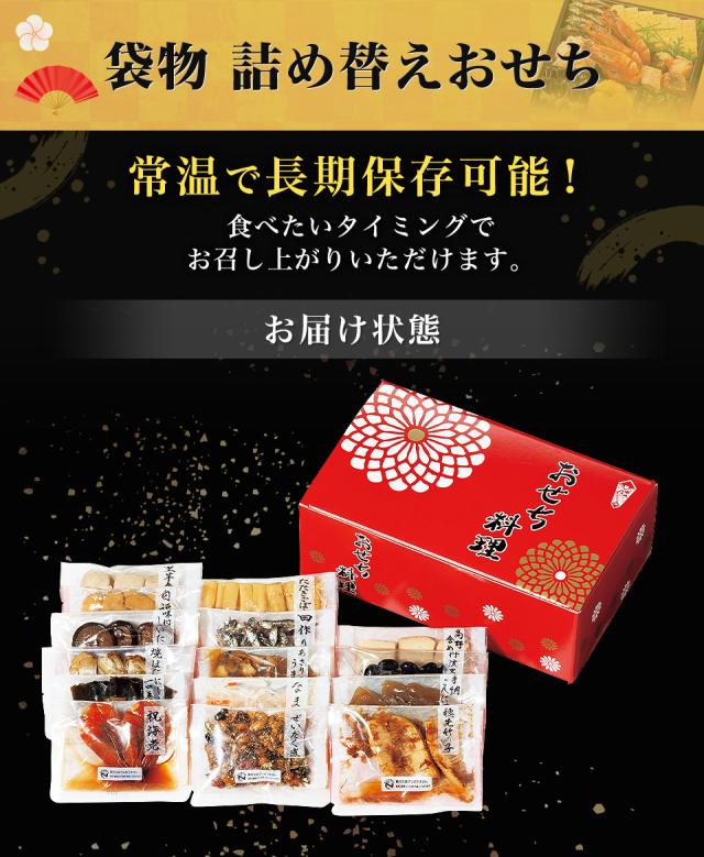 いわれのあるものや祝い肴を基本に、箸休めの品を少し加えた少量欲張りセットです。
