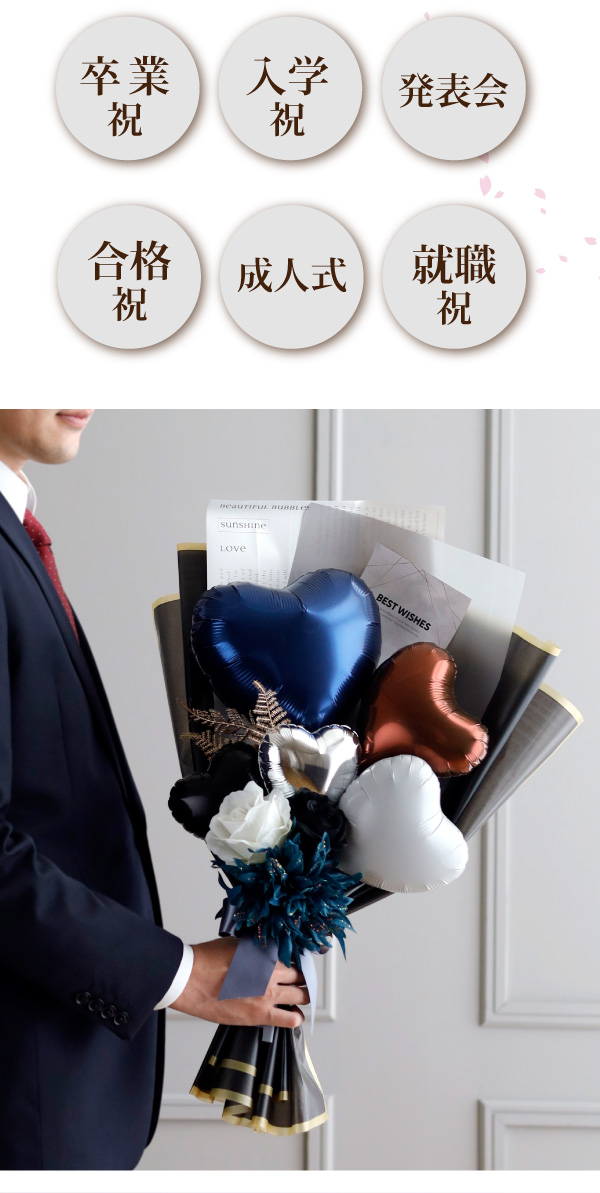 卒業式や入学式といった門出を彩り、彼氏・彼女、家族など大切な人への気持ちを華やかに届けます。