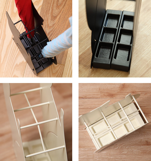 中に仕切りがあるので、傘どうしが濡れるのを防いでくれます。長傘なら最大6本の収納が可能です。