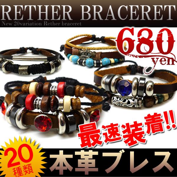 最速装着 全20種類 超人気 本皮ブレス シルバーに重ね付けもお勧め メンズ本革ブレスレット【 kb4 】