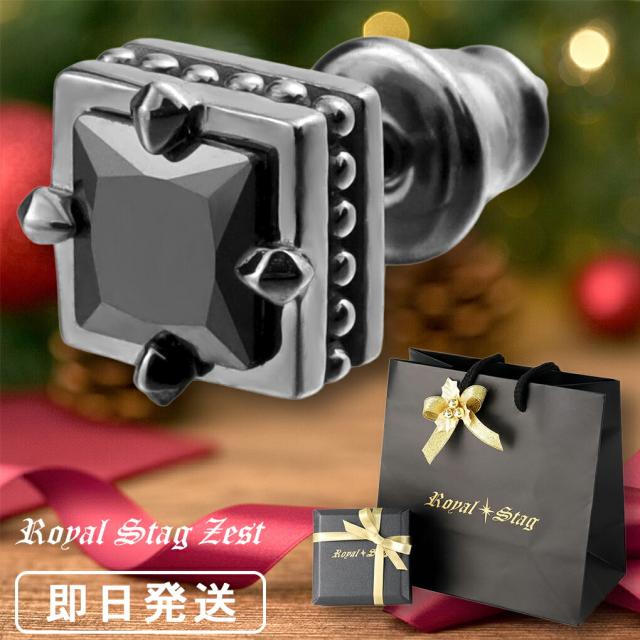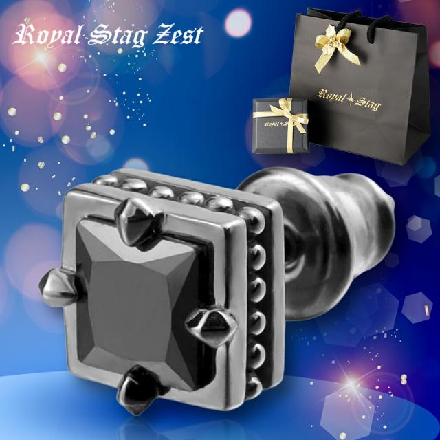 ブラックカラー スクエア 一粒 スタッドピアス 1P 片耳用 ブラックジルコニア 黒 四角 メンズピアス 男性 彼氏 プレゼント 人気 シック ブランド Royal Stag ZEST ロイヤルスタッグ