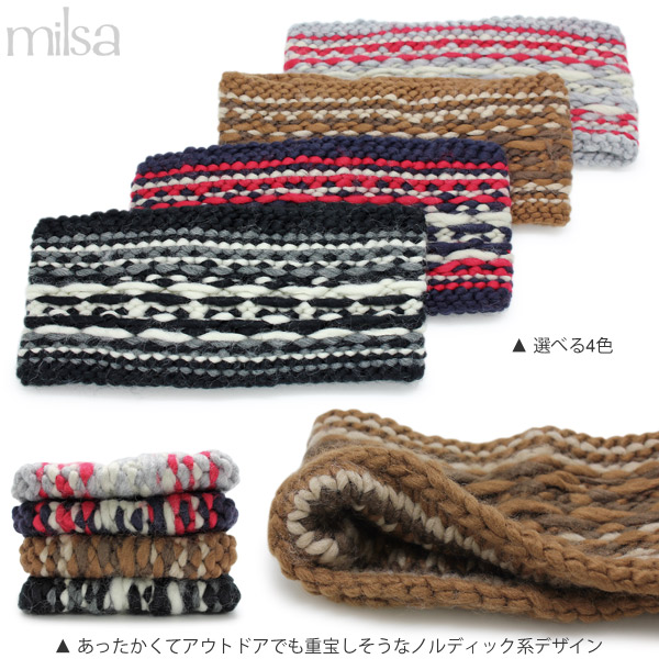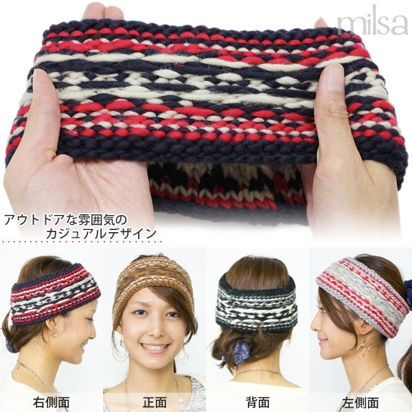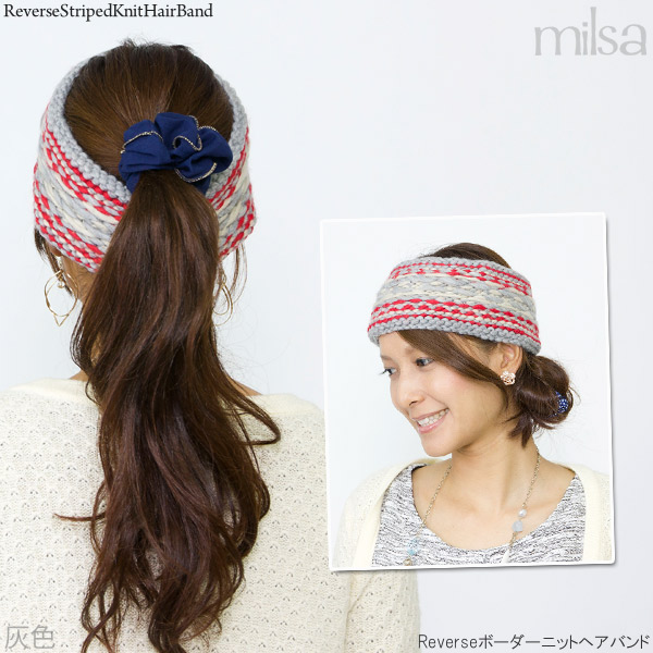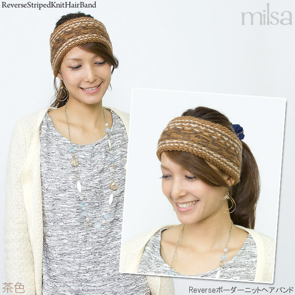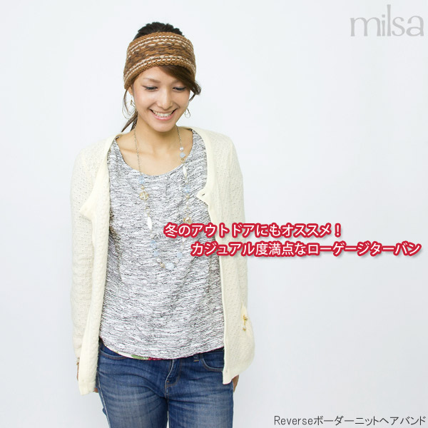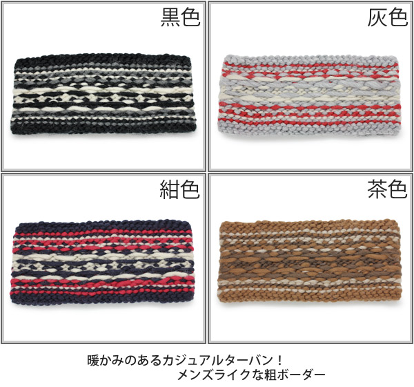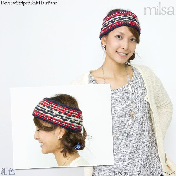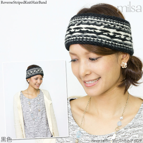 ターバン レディース [メール便可] 女性用 ローゲージ ノルディック 秋冬 / Reverseボーダーニットヘアバンド