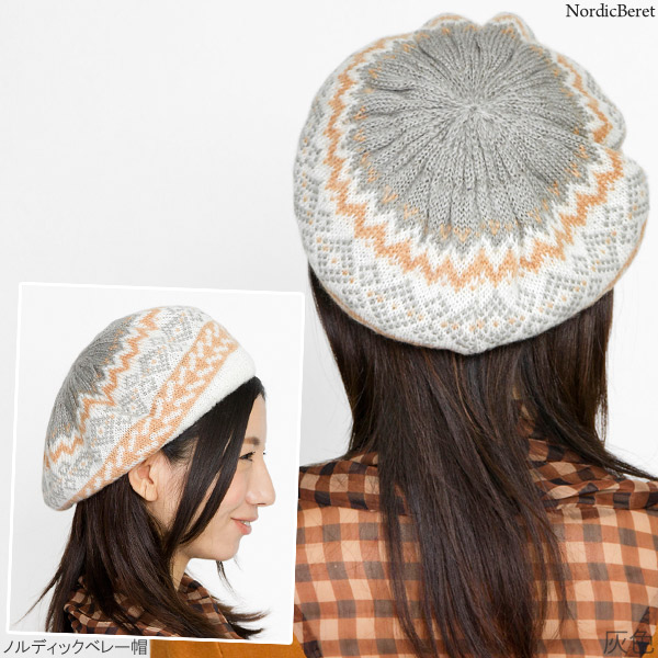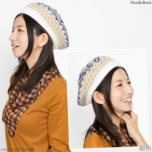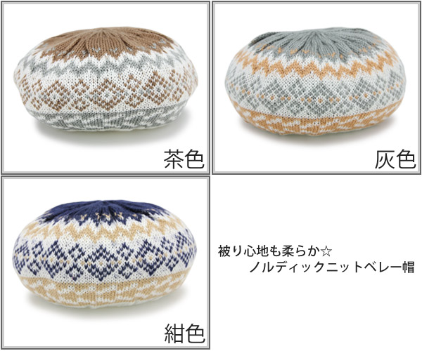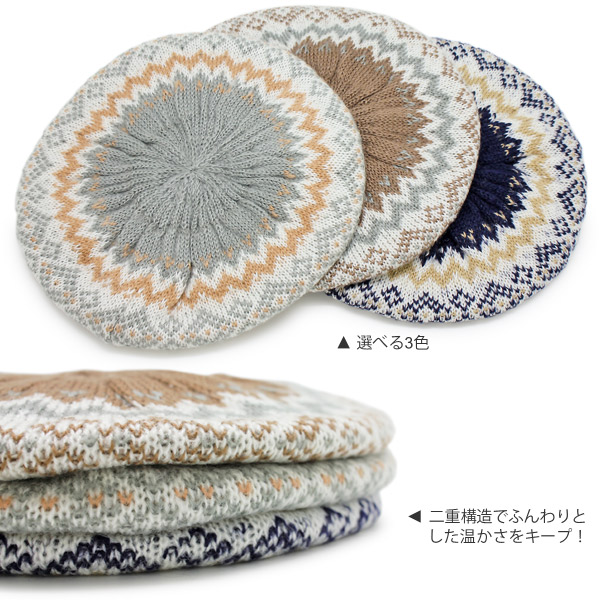 ベレー帽 ノルディック [メール便可] 秋冬 レディース 帽子 ニット 北欧柄 / ノルディックベレー帽