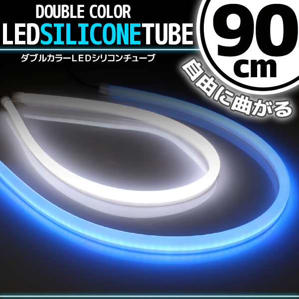 汎用 シリコンチューブ 2色 LED ライト ホワイト/ブルー 白/青 90cm 2本セット シリコン ライト ランプ アイライン デイライト イルミ ポジション スモール バイク オートバイ 自動車 部品 パーツ カスタム 電装
