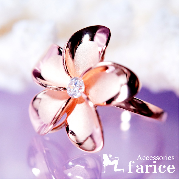 ★商品のサイズ★ プルメリア(花) 21mm幅 重さ約3g ★素材★ シルバー925+ピンクゴールドコーティング+クリアキュービックジルコニア