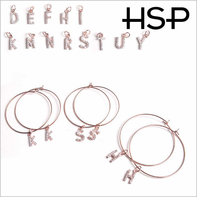 316Lステンレス ジュエルアルファベット ピンクゴールド フープピアス(1ペア)