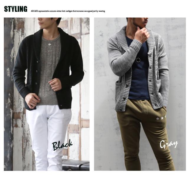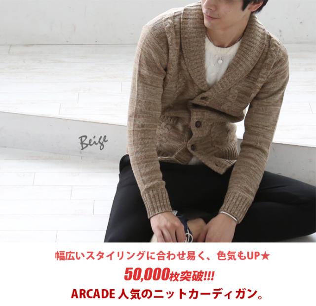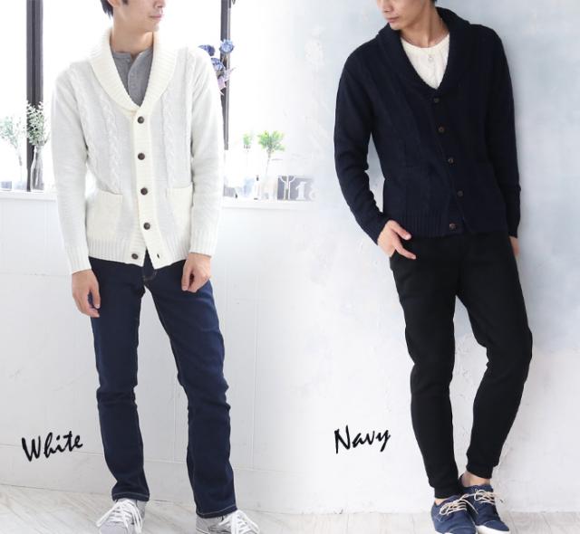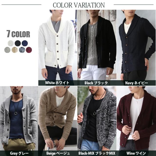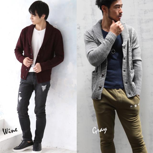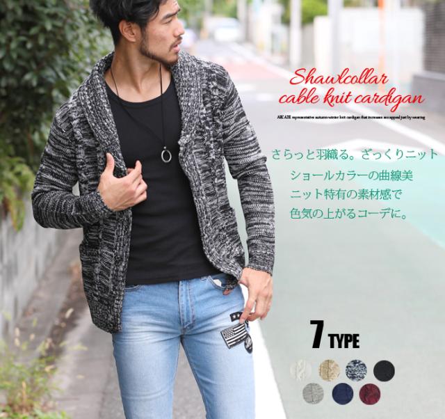 カーディガン メンズ 春新作 ニットカーディガン ショールカラー ケーブル編み ニット