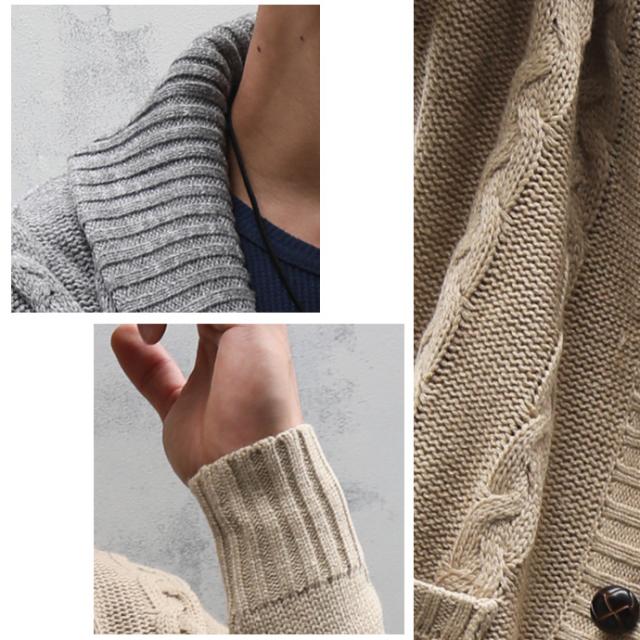 今シーズン注目の首元は丸みのある上品な雰囲気のショールカラー、フロントはケーブル編みの大本命ニットカーディガン!
