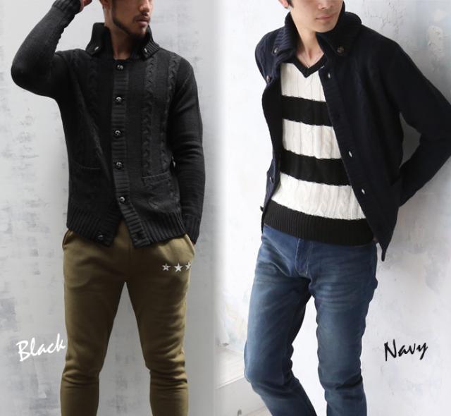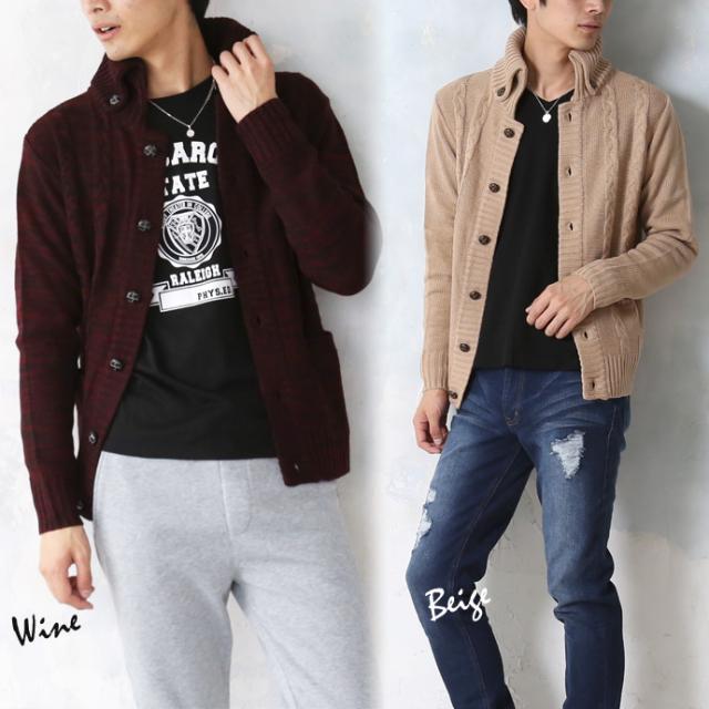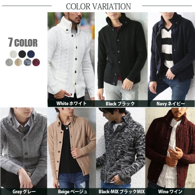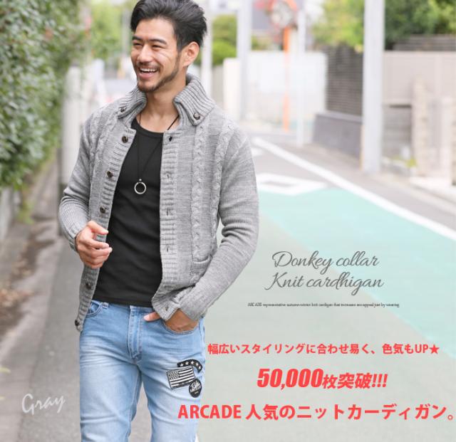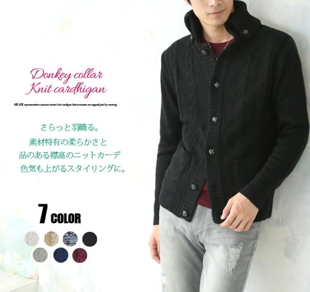カーディガン メンズ ケーブルニット ドンキー襟 ケーブル編み ニットカーディガン 新作 メンズ ニット セーター ニットジャケット