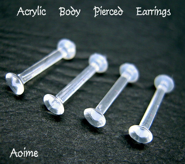 4本セットでお買得!!ピアスホールの収縮を予防したい時やピアスホールを隠したい時の必須アイテム、透明ピアス。アクリル素材はステンレスより軽く、価格もお手頃。とても軽いので負担が少なく、非金属なので金属アレルギーも防ぎます。ゴム製のリングで留めるだけの簡単装着です。