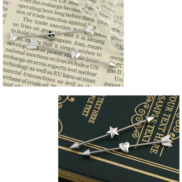 ボディピアス インダストリアル 14G 16G 矢 弓矢 ドクロ スカル 骸骨 ハート 星 スター ロングバーベル 軟骨ピアス サージカルステンレス 金属 アレルギー 対応