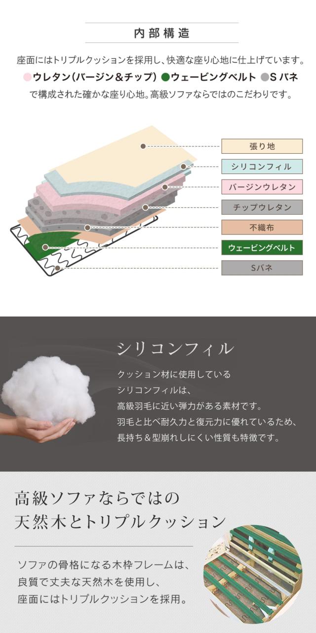 構造部材:天然木・合板・綿・ポリプロピレン・不織布・ウェイビングベルト・Sバネ