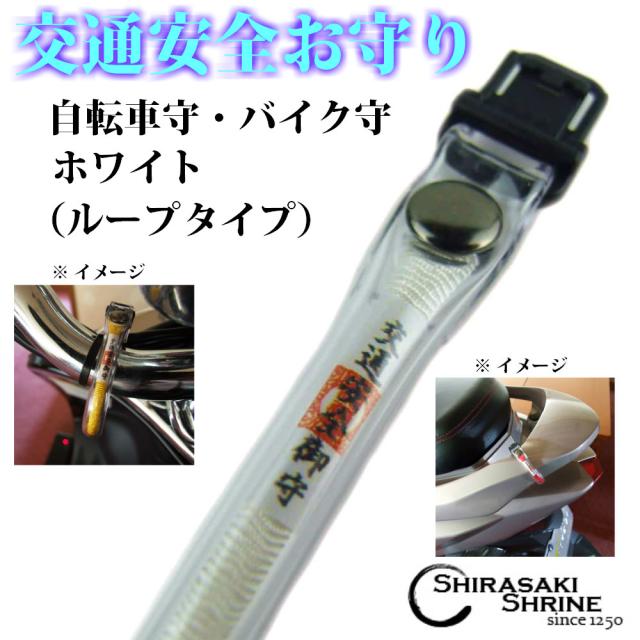 交通安全 自転車・バイクお守り ホワイト ループタイプ 白崎八幡宮で祈願済みのお守り