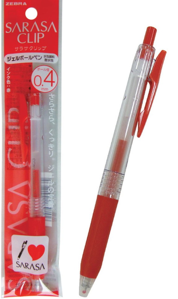 ●「ゼブラ サラサクリップ0.4赤 1本入T P-JJS15-R」は、さらさら書き味のゲルインク事務用ボールペン細字用です。顔料インクを使用している為、耐水性、耐光性にも優れています。ラバーグリップの採用により握りやすさはもちろん、どんな持ち方にも対応できます。機能性に優れた可動式バインダークリップを採用している為、厚みのあるポケットや書類に挟んでも携帯でき、使用シーンが広がります。エコマーク認定。替え芯はJF0.4芯をご使用ください。