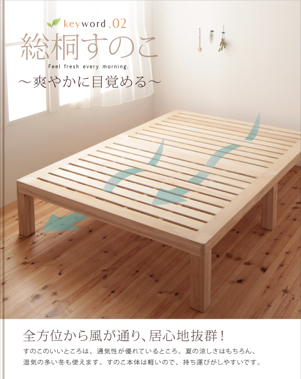 【材質】フレーム:天然木桐材(ラッカー塗装) すのこ:天然木桐材(無塗装)