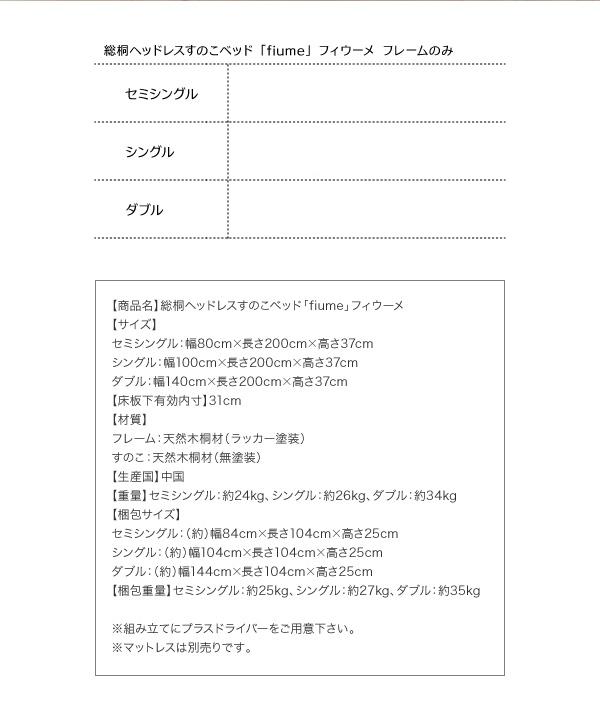 総桐ヘッドレスすのこベッド〔fiume〕フィウーメ シングル ナチュラル 【北海道・沖縄・離島配送不可】