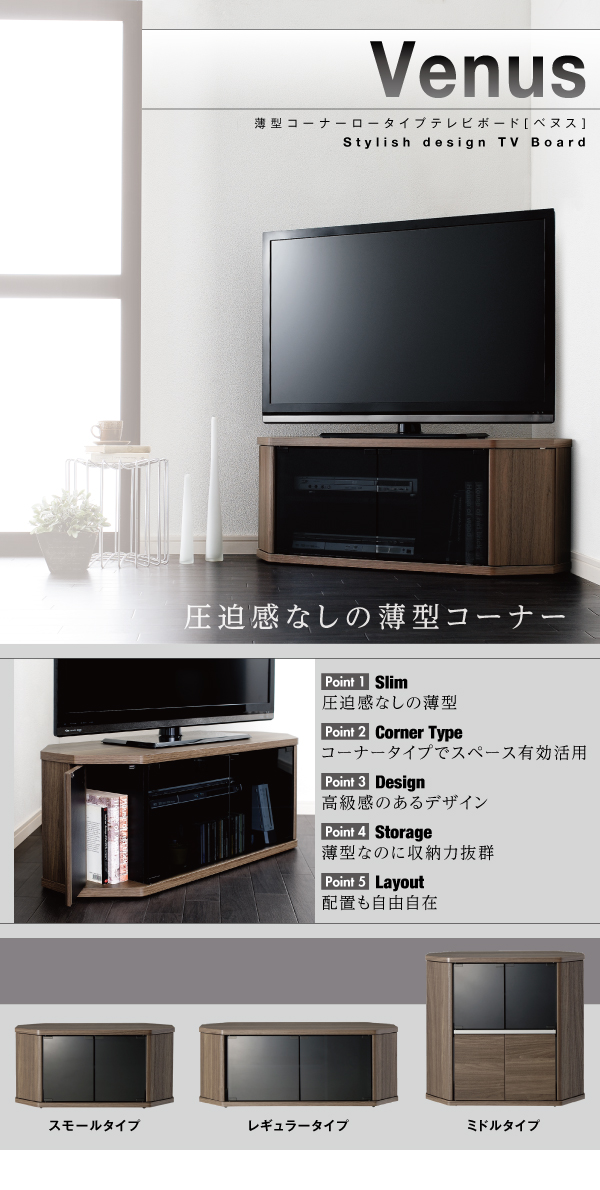 【送料無料】薄型コーナーロータイプテレビボード【Venus】ベヌス レギュラータイプ ウォールナットブラウン