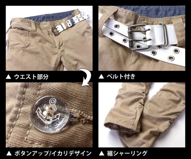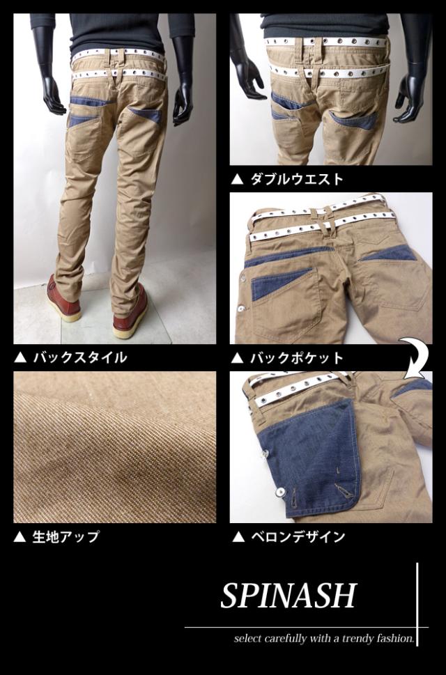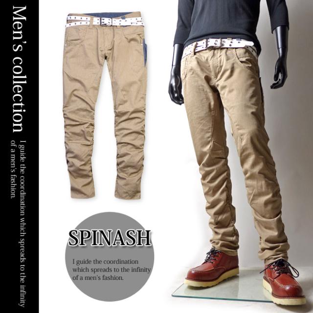 【送料無料】メンズ ロングパンツ チノパン SPINASH スピナッシュ ベルト付き ベロンパンツ 裾シャーリング ボトム