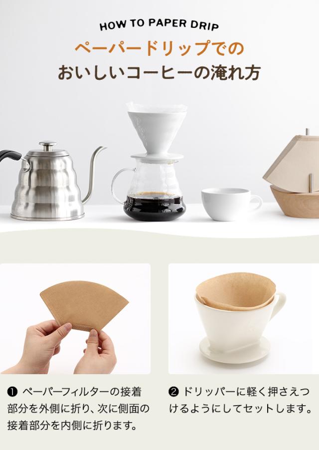 | このコーヒーフィルターは、日本製で安心・安全。微細なコーヒーの粉までしっかりキャッチし、コーヒーの味をより美味しくします。さらに、未晒しのバージンパルプを使用し、染色や脱色を行わない自然な素材で作られています。 1. 微粉をしっかりキャッチ!雑味のないコーヒーを楽しめる このコーヒーフィルターは、繊維の細かさと吸着力に優れています。コーヒーを淹れる際に出る微粉もしっかりキャッチするので、口当たりが滑らかで、雑味のない美味しいコーヒーを楽しむことができます。特に、コーヒーの味わいにこだわりたい方にはぴったりです。多くのフィルターでは微粉が残ってしまい、味に影響を与えることがありますが、このフィルターならその心配がありません。だからこそ、澤井珈琲の品質を最大限に引き出し、毎回安定した味を提供します。 2. 安心の日本製!染色・脱色なしの未晒しタイプ このフィルターは、安心の日本製であり、染色や脱色を行わない未晒しタイプです。バージンパルプを使用し、再生紙ではなく初めて使用する木材から作られているため、安心して使用できます。未晒しタイプのため、紙臭さが少なく、コーヒー本来の風味を損なうことなく、しっかりと抽出できます。特に、素材にこだわりたい方や、安心して使える製品を探している方には最適です。毎日のコーヒータイムをより安心で快適なものにしてくれるでしょう。 3. コーヒー以外にも活躍!便利な使い方がたくさん このコーヒーフィルターは、コーヒーを淹れるだけでなく、日常生活でも活躍します。例えば、ポーチドエッグ作りや水切りヨーグルトを作るときに使うと、とても便利です。また、フィルターを何枚か束ねて水を張ったコップに差せば、簡易的な加湿器としても使えます。このように、フィルターを活用することで、毎日の生活が少し楽しく、便利になります。コーヒータイムだけでなく、さまざまなシーンで役立つアイテムです。 | |
