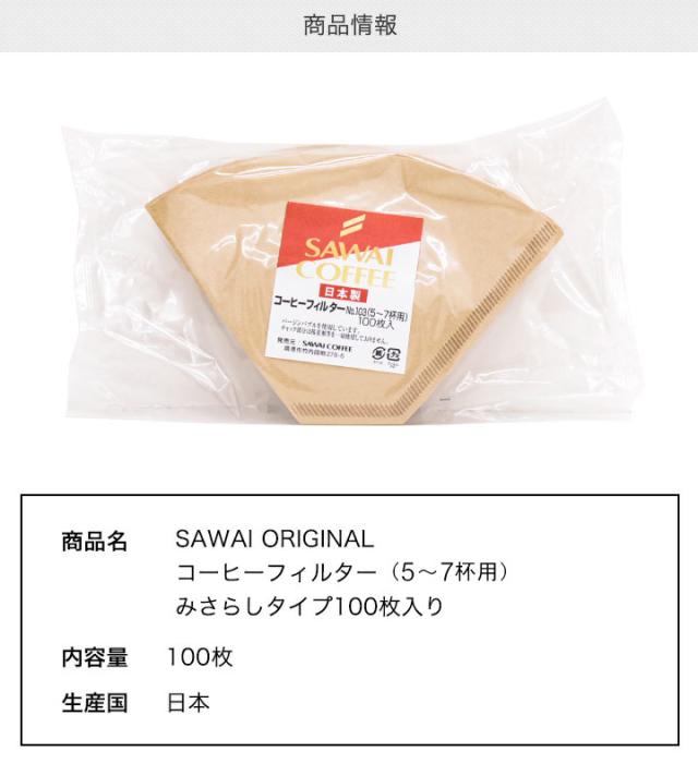 | 商品名 | SAWAI ORIGINAL オリジナルフィルター(5〜7杯用)みさらし 100枚入り |