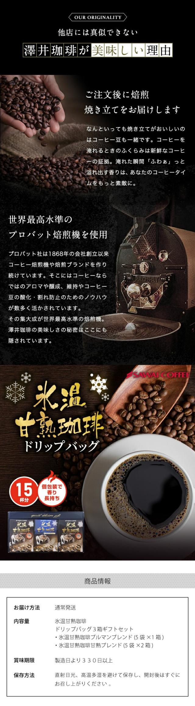 | 商品名 | 贅沢なひとときを 澤井珈琲氷温甘熟ドリップバッグ3箱セット |