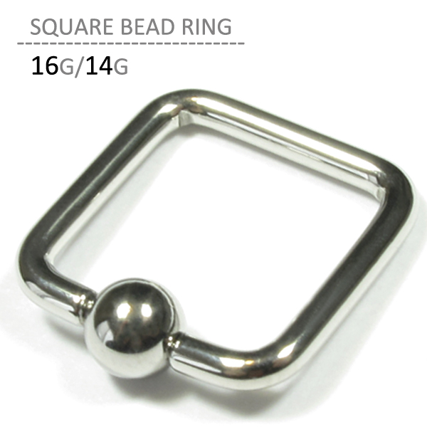 ボディピアス スクエア ビーズリング 14G 軟骨ピアス 16G ヘリックス イヤーロブ 耳ピアス つけっぱなし シルバー サージカルステンレス 金属アレルギー対応 キャッチ 片耳 軟骨 ピアス 変形 四角形 正方形 ボディーピアス