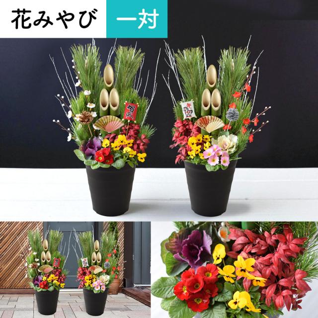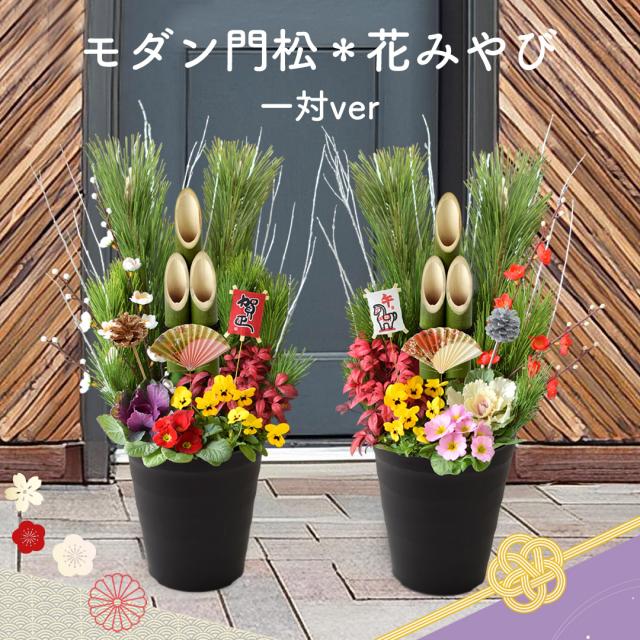 正月 年内お届け 門松 玄関 お正月 迎春 モダン門松 「 花みやび ( 一対 )」 正月飾り お正月飾り 玄関用 花 お年賀 ギフト正月 寄せ植え 仕立て 正月花 お正月 お正月後は寄せ植えに変身 迎春 モダン 縁起物 お年賀 ギフト 花飾り おしゃれ 午年 マンション 松 2026 送料無料