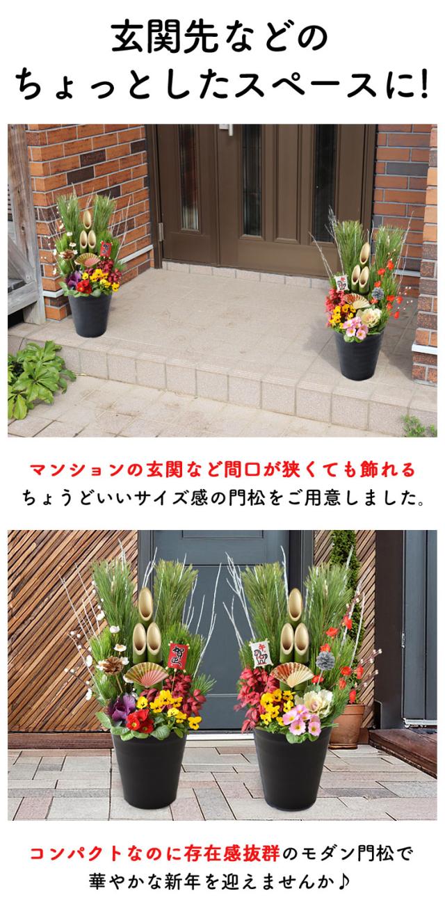 - 本物の門松にはかないませんが、洋風一般住宅にぴったりだと思います。寄せ植えの花と飾りが上品さをプラスしてます。サイズもうちの玄関にちょうど良く満足してます。
