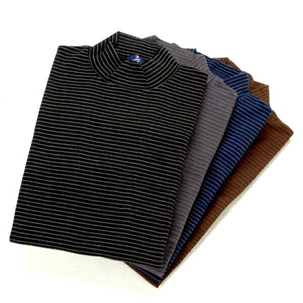 ハイネック マルチボーダー 胸ポケット無し スムス 長袖Tシャツ 起毛 素材 あったか 柔らか 【クロネコ ネコポス便発送】