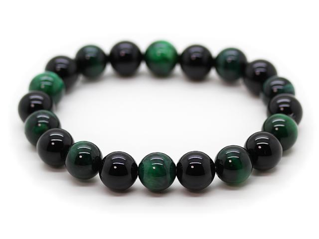 4Aランク高級天然石のグリーンタイガーアイ10mmとオニキス10mmを交互に合わせたシンプルなブレスレットです。