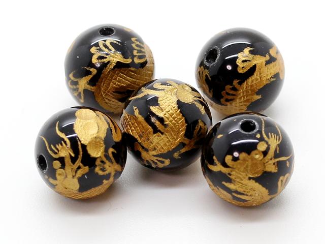 石輝 [バラ売り5玉]金彫五本爪皇帝龍オニキス10mm玉パワーストーン 作成用ゴム1m&通しワイヤー&ブレスレットの作り方説明書付き