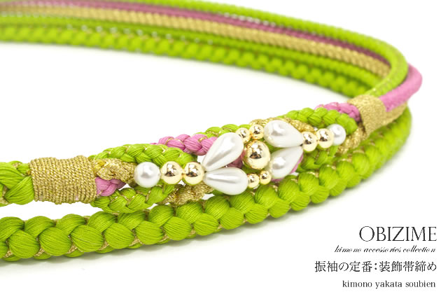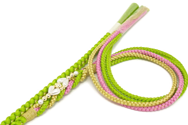 帯締め 振袖 成人式 振袖用 帯締め成人式 結婚式 礼装 フォーマル 黄緑 グリーン パール 手組紐 金糸 着物 正絹