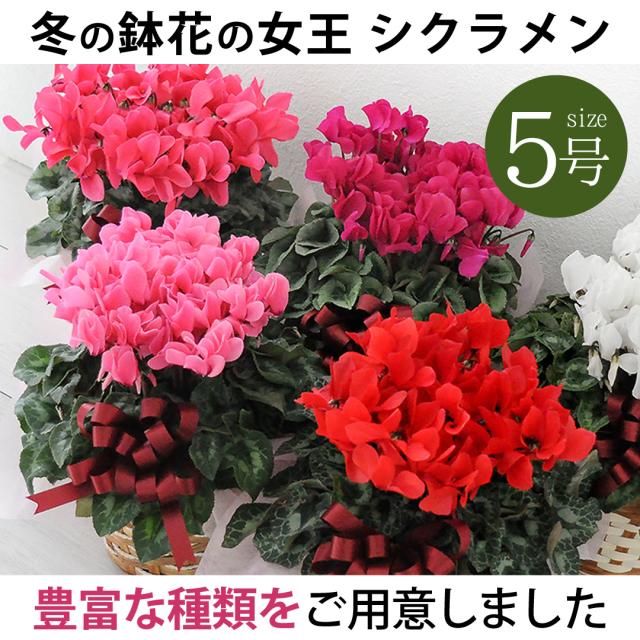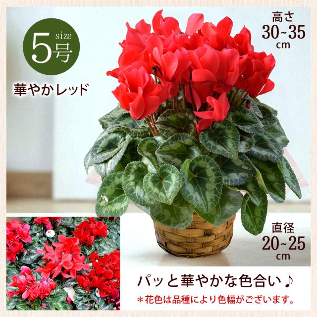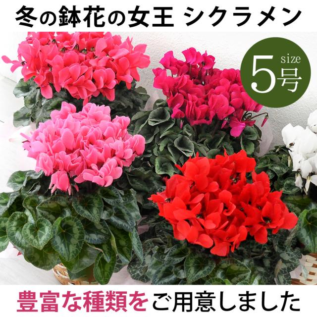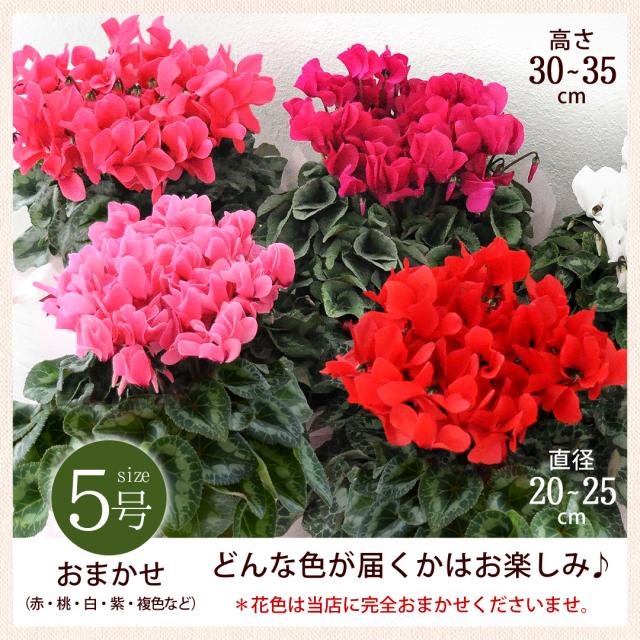シクラメン 5号鉢(赤系、ピンク系、おまかせ のいずれか1種)/