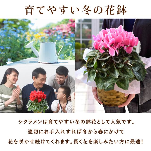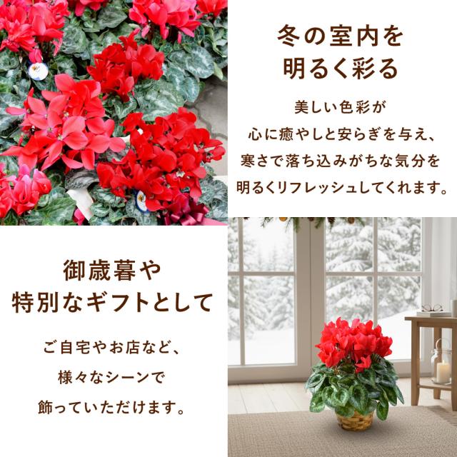 鉢植え シクラメン 5号鉢 バスケット付 赤系 ピンク系 お歳暮 ギフト 花 おしゃれ 花鉢 冬 鉢植え 花鉢 鉢花 クリスマス 誕生日 プレゼント 女性 母 祖母 フラワーギフト お祝い 冬ギフト ウィンターギフト 冬 ※寒冷地お届け不可 【11月15日〜12月25日のお届け】 送料無料