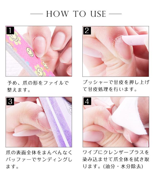 ジェルを塗布する前に極少量を自爪全体り、約1分ライトで硬化させたのち、ジェルを塗って下さい。