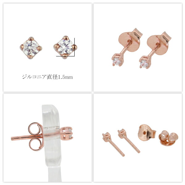 定番 1.5mm ジルコニア 一粒 スタッドピアス 2P 両耳用 シルバー925 ピンクゴールド シンプル ベーシック プチ 一粒ピアス レディ—スピアス