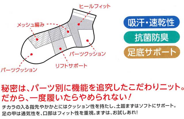 ・吸汗・速乾性 抗菌防臭 足裏サポート