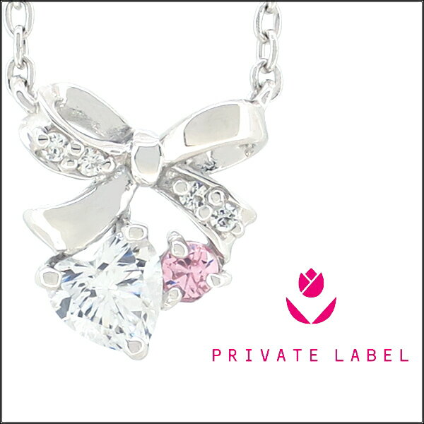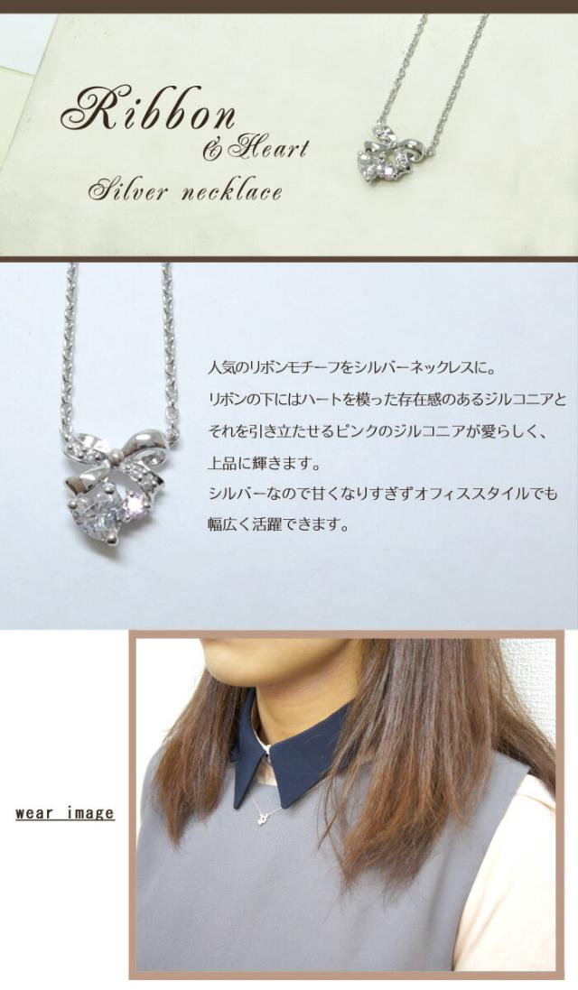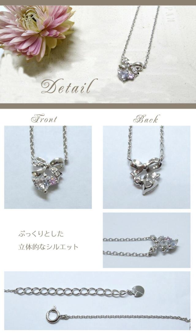 シルバー(ロジウムコーティング)ピンクジルコニア リボン ネックレス/レディース ジュエリー