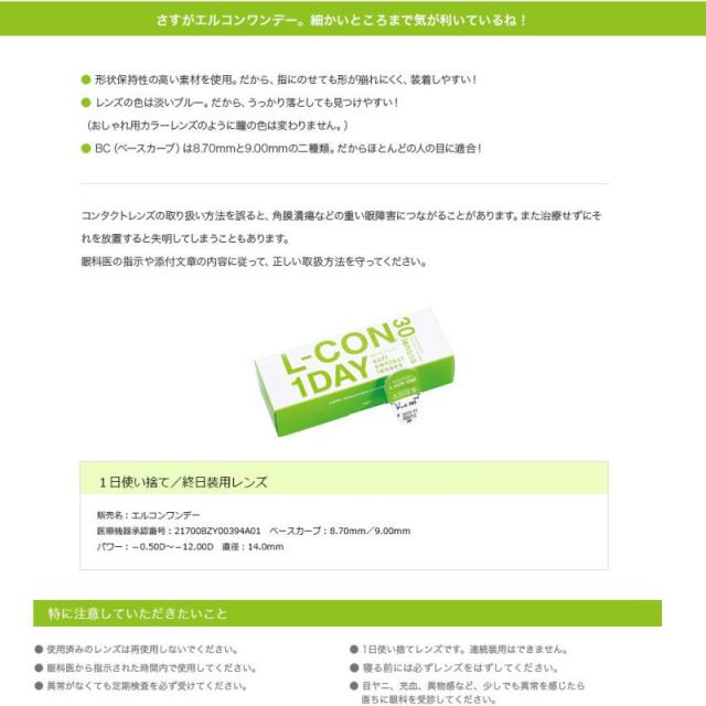 コンタクト 8箱セット エルコン ワンデー 1日使い捨て L-con 1DAY コンタクトレンズ 度あり 30枚入