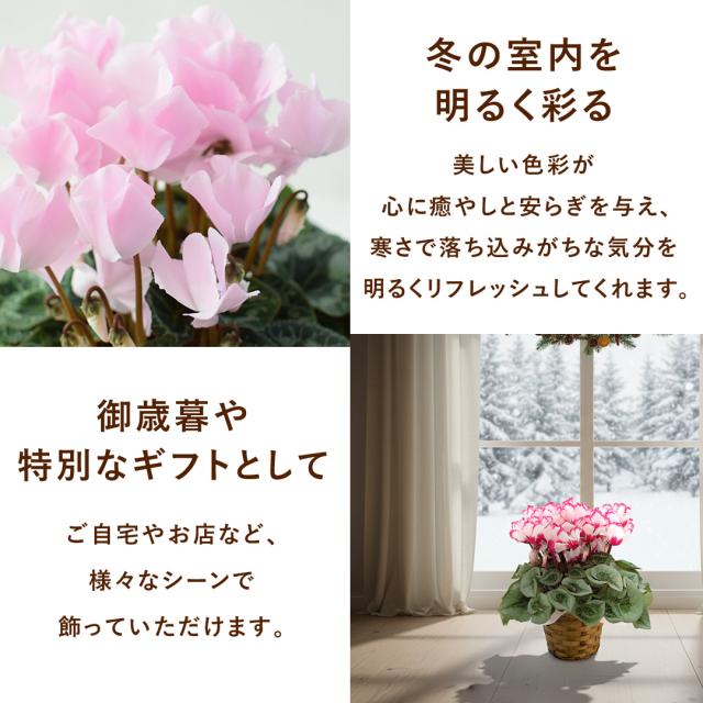 鉢植え 品種が選べる シクラメン 5号鉢 バスケット付 赤系 ピンク系 お歳暮 ギフト 花 おしゃれ 花鉢 冬 鉢植え 花鉢 鉢花 クリスマス 誕生日 プレゼント 女性 母 祖母 フラワーギフト お祝い 冬ギフト ウィンターギフト 冬 ※寒冷地お届け不可 送料無料