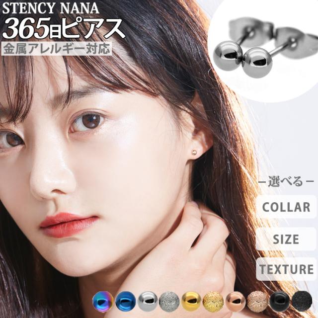 金属アレルギー対応 ステンレスピアス つけっぱなしにおすすめ 丸玉ボールピアス シルバー イエローゴールド ローズゴールド ブラック 両耳用 ファーストピアス セカンドピアス ボディピアス 華奢