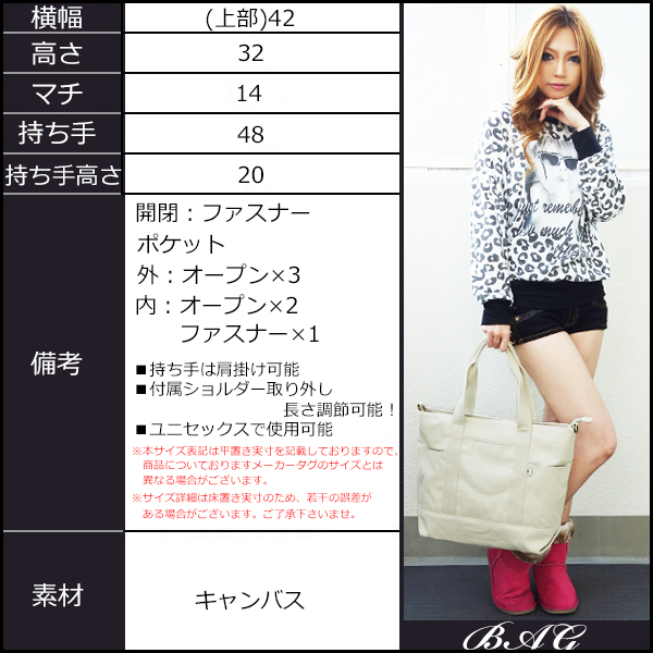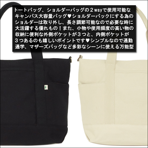 トートバッグ/ショルダーバッグの2wayで使用可能なキャンバス大容量バッグ♪ ショルダーは取り外し長さ調節可能なので必要な時に大活躍。