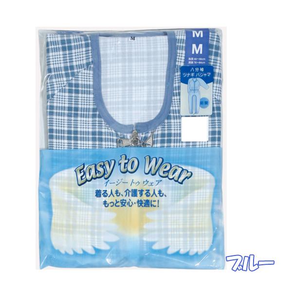 介護用 8分袖 つなぎパジャマ フルオープン 鍵付き 全開 前開きファスナーロック式 介護用パジャマ M/L/LL